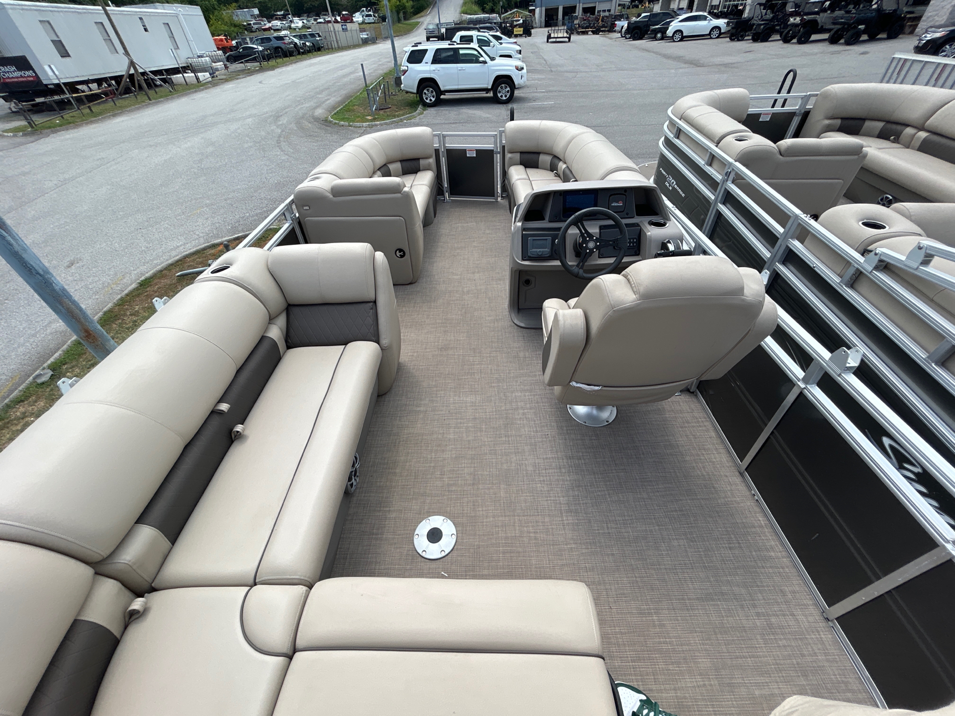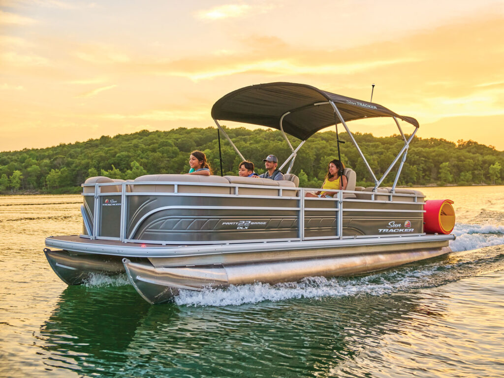 The 2023 22’ Sun Tracker pontoon boat is rated to carry up to 11 people total, including the operator. The maximum weight capacity is approximately 1,500–1,600 lbs, which includes passengers, gear, and personal items.